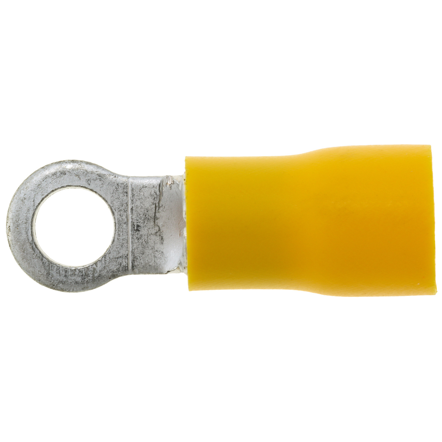 The PVC Insulated Solderless Ring Terminal has a serrated barrel for greater wire retention and pullout strength.